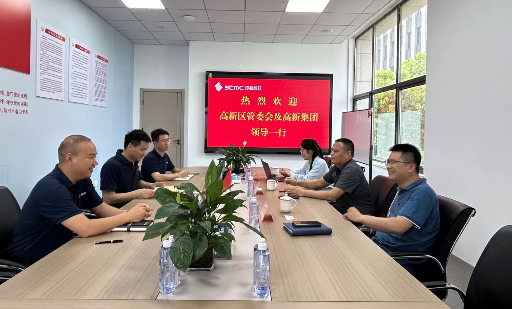 7月19日下午,合肥市高新區(qū)管委會副主任黃禮杰、高新集團董事李安一行蒞臨中科創(chuàng)芯參觀交流,中科創(chuàng)芯總經(jīng)理張青松、副總經(jīng)理韓紅波、運營總監(jiān)郭建軍等陪同參觀。